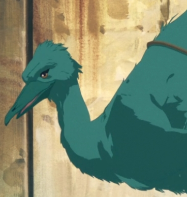 - along the north-east side of the cottage, there's another roughly-wrought pen that houses a large bird-like creature, green in colour